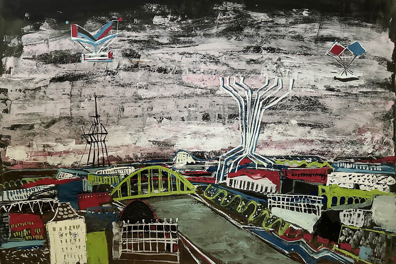 Der bekannte Hamburger Sezessionist Arnold Fiedler (1900-1985) wäre in diesem Jahr 125 Jahre alt geworden. Anlass genug, das vielseitige Schaffen Fiedlers, der in Hamburg wie in Paris Spuren hinterlassen hat, mit einer neuen Ausstellung zu würdigen. Fiedler gilt als Vorreiter der gegenstandsfreien Malerei in Hamburg. Die Ausstellung skizziert aber nicht nur diesen Weg anhand von Werken der geometrischen Abstraktion und des Tachismus, sondern zeigt ebenso frühe Milieustudien, Arbeiten eines Nachkriegssurrealismus, farbintensive Collagen und die Wiederkehr zum Gegenständlichen. Doch können all diese Versuche einer Einordnung von Werkphasen angesichts des völlig unverwechselbaren Stils Arnold Fiedlers, der einen hohen Wiedererkennungswert hat, nur einen groben Überblick geben. Der vom französischen Kunsthistoriker Pierre Courthion als pariserischer Hamburger bezeichnete Fiedler, der einst in Paris sein Atelier neben dem bekannten Bildhauer Alberto Giacometti (1901-1966) hatte und in Hamburg in den Grindelhochhäusern nächtliche Ansichten der Stadt, Traumbilder und Werke über die Sturmflut erschuf, erhielt 1956 den Edwin-Scharff-Preis der Stadt Hamburg. Die Werkpräsentation Durch die Nacht zeigt anlässlich seines Jubiläums auch einige von Sammlern aus Hamburg und Berlin geliehene, besonders eindrucksvolle Werke Fiedlers, die seit längerer Zeit nicht mehr öffentlich zu sehen waren.